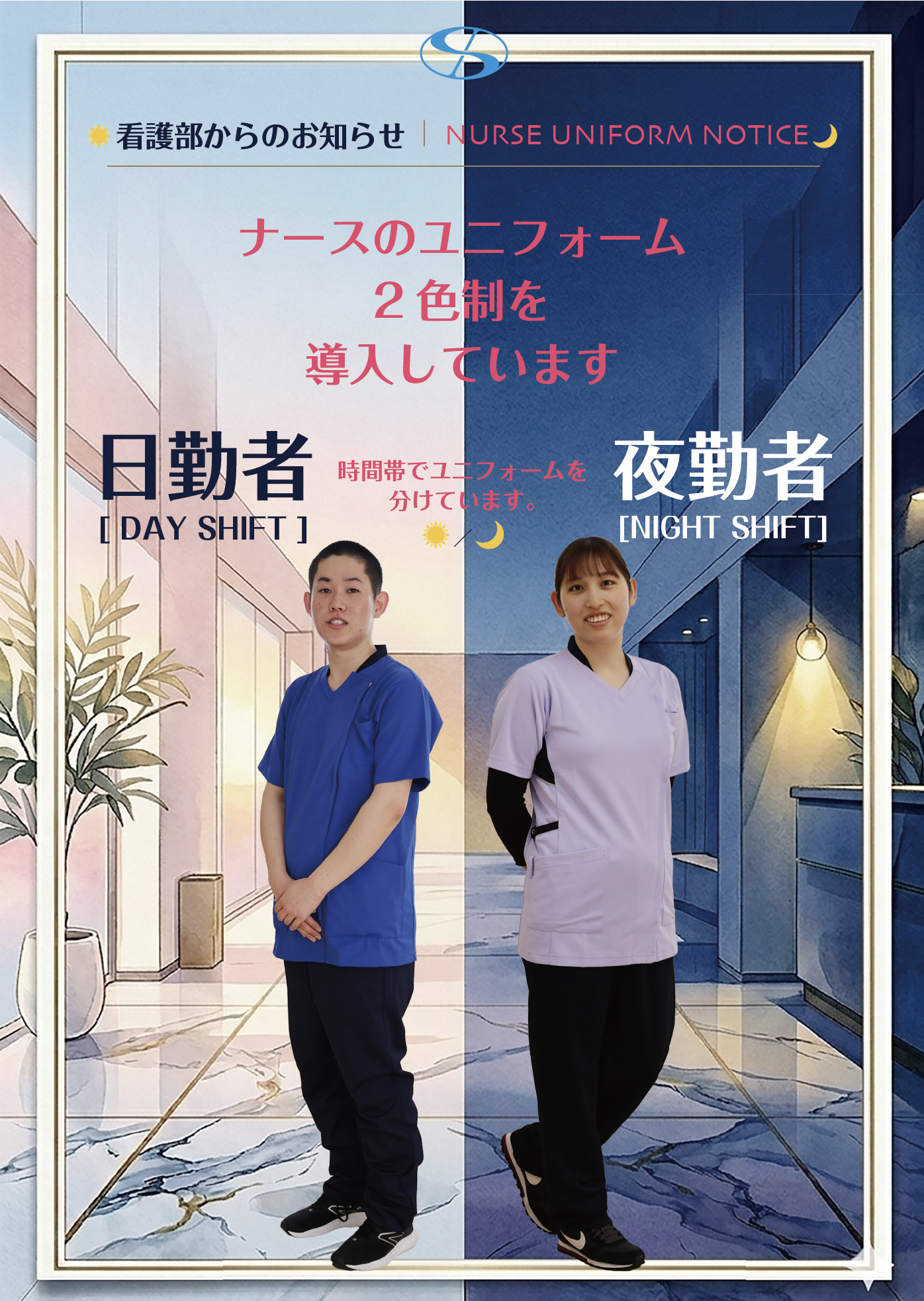 看護師のユニフォームが2色制になりました。